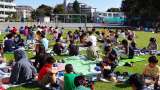 ロング集会の後は、持参した弁当箱に教室で給食をつめ、芝生で希望っ子班ごとにお弁当...