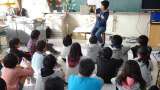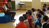 3年生のようす。担任が読み聞かせをしています。いつもは元気な声が響いている3年生...
