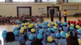 みんなで「さんぽ」を歌いました。最後に園児の代表に感想を聞き、1・2年生が作った...