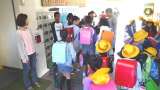 生活科の時間を使って考え、準備したお店が並びます。園児はスタンプカードを首にぶら...