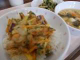 ☆献立☆ かき揚げ丼 牛乳 みそ汁 おひたし ☆食材☆ 卵・・・群馬 玉葱・に...