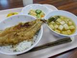 ☆献立☆ 魚のかばやき丼 牛乳 野菜の甘酢かけ すまし汁 みかん ☆食材☆ み...