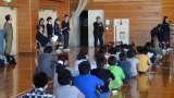 中学校見学会最後のプログラムは、体育館で中学校生徒会の皆さんから中学校生活につい...