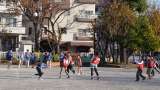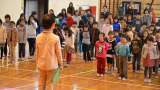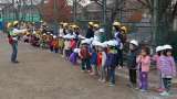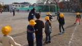 21日の休み時間、1年生の子どもたちと担任教諭が一緒に長なわとびをしていました。...