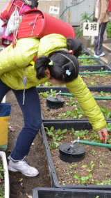 22日終業式の日、帰りに、子どもたちがプランターに自分たちでまいた種からできたラ...