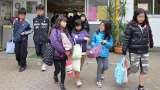 通知表を受け取った後、席に戻ってそっと開いて、堂々と見せ合う子など反応も様々です...