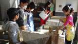 6年生は卒業証書に使う和紙をすいてきました。世界で一枚の手作り卒業証書になります...