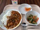 献立 ハッシュドポークライス 牛乳 こんにゃくサラダ くだもの(みはや)