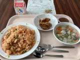 献立 チキンライス 牛乳 鶏肉のからあげ ABCパスタスープ ココアプリン