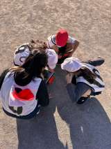 校庭の体育ではハードル走の学習をしています。 自分に合ったインターバルを決めた後...