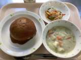 献立 ココアビスキュイパン 冬野菜シチュー こんにゃくサラダ 牛乳