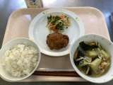 献立 麦ごはん 和風ハンバーグ ごま酢和え じゃがいもとわかめのみそ汁 牛乳