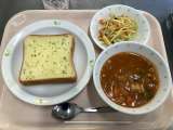 献立 ガーリックトースト 鶏肉のトマトソース煮 じゃがいものハニーサラダ 牛乳