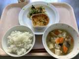 献立 ごはん さけのにんじんみそ焼き もやしのごま酢和え きりたんぽ汁 牛乳