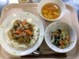 献立 プルコギ丼 わかめサラダ フルーツポンチ 牛乳