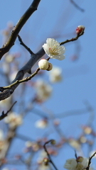 校庭の東の端、烏山川緑道の入り口のところにある梅の木に花が咲きました。白梅と紅梅...
