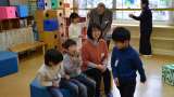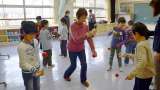 ご挨拶の後は二つの教室に分かれて、昔の遊びを教えていただきました。絵本の部屋では...