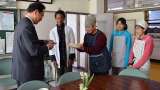 26日朝、保健委員会の児童が1〜4年生の各学級を回って、ハンカチを持っているか、...