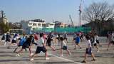 28日、3年生の体育のようすです。前半は持久走です。3年生は5分間で校庭のトラッ...