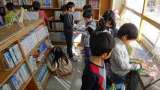 借りる本が決まった子は、座席について本を読んだり、「読書の記録」に本の記入をした...
