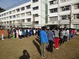 「節分」についてのお話がありました。 とても寒い朝でしたが、児童は興味深く聞き入...