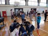 「かがやく目の会」の皆様をお招きし、昔遊び交流会をしました。コマ、けん玉、竹とん...