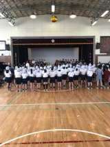 今日の「みんなで楽しく集会」は「希望っ子班対抗ボール送りゲーム」。 さわやかな青...