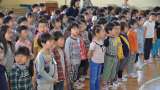 音楽朝会の1年生です。先生のいうことを聞いて、一生懸命歌っているのがかわいいです...