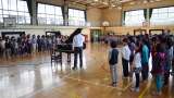26日(金)朝、体育館で音楽朝会を行いました。今日は校歌の練習です。いつも歌い慣...