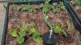 グリーンカーテンに植えられている苗です。左からヘチマ、キュウリ、ゴーヤです。例年...