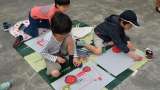 今日はあいにく風が強く、風にあおられて、絵を描く用紙が飛びそうになってしまったり...