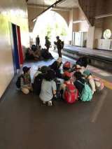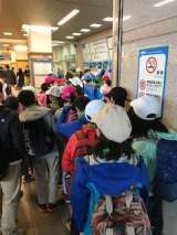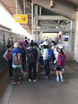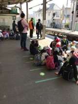 ホームで電車を待っています。 とても静かで、立派な態度です。 さすが、希望丘小学...