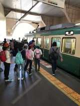子供たちは、江ノ電を見て、レトロな感じに驚いています。 興味津々で乗車しました。...