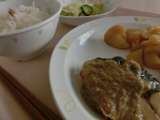 ☆献立☆ 桜の花ごはん 牛乳 魚のごまだれかけ じゃがいもの甘辛煮 即席漬 ...