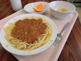 ☆献立☆ スパゲティミートソース 牛乳 じゃがいものハニーサラダ 清見 ☆産地...
