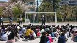 4月の避難訓練の様子です。今回は学校の北側の民家が火事になったという想定のもと、...