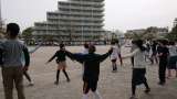毎週水曜の朝はスポーツタイムです。最初は五分間走に取り組みます。五分間、トラック...