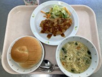 ◆献立◆ミルクパン白身魚のフライ春野菜のサラダ洋風卵スープ牛乳