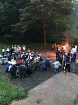 キャンプファイヤーが始まりました。 遠き山に日は落ちての歌の後、火の神と火の子が...