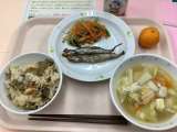 ☆献立☆ 深川めし 牛乳 豆腐汁 焼きししゃも 糸寒天と野菜のあえもの 冷凍みか...
