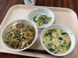 ☆献立☆ 豚丼 牛乳 かきたま汁 野菜のゆかりかけ ☆食材☆ 卵・・・群馬 豚...
