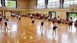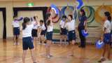25日5校時、5・6年生が体育館に集まり、2学期に運動会で踊る「みかぐら」の練習...