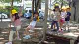 せっかく公園に行ったので、みんなで遊具を使って遊んできました。クラスみんなで仲良...
