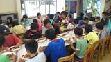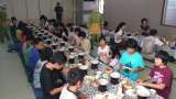 昼食です。メニューはカツカレー。日光林間学園最後の食事です。しっかり食べています...