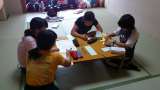 出発までのひととき、五七五の川柳づくりに一生懸命。荷物もまとめて出発準備。