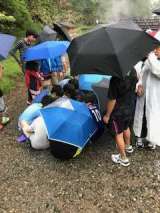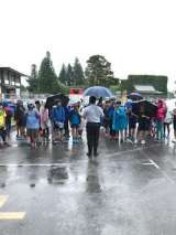 3日目の朝を迎えました。 朝会の様子です。 少し、雨が降っていますが、これから、...