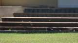 26日、芝生の上をアキアカネが飛び回っていました。プール帰りの子どもたちも関心を...