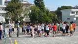 次に開会式の後に行う応援の練習をしました。応援団は連日の練習でちょっと疲れ気味。...