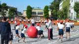 続いて練習したのは大玉送り。本校は児童数が少ないので、一人あたりにかかる大玉の重...
