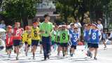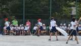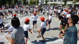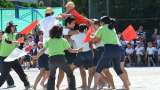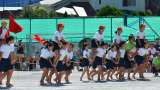 午後の部は予定より少し遅れてスタート。最初のプログラムは児童席での赤白の応援です...
